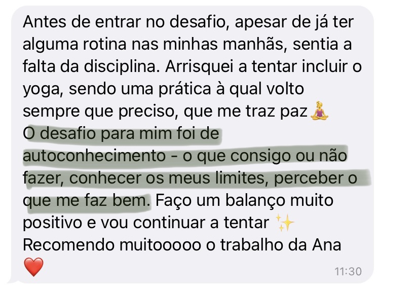 O meu nome é Ana, e durante anos acompanhei mulheres que, tal como tu, sentiam dificuldade em criar uma rotina consistente.